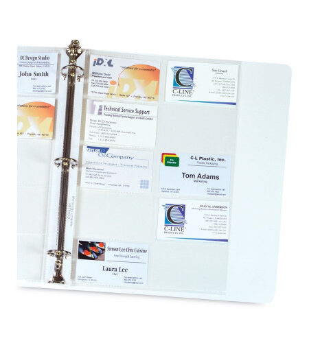C-Line Business Card Binder Pages, For 2 x 3.5 Cards, Clear, 20 Cards/Sheet, 10 Sheets/Pack