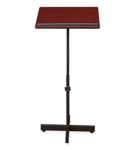 Practical speaker stand lectern. Features 16 x 20 reading surface. Adjustable height from 30'' to 44''. Features protective T-Mold edging and a sturdy MDF core. Includes paper/book stop. Features a 16-gauge steel frame.